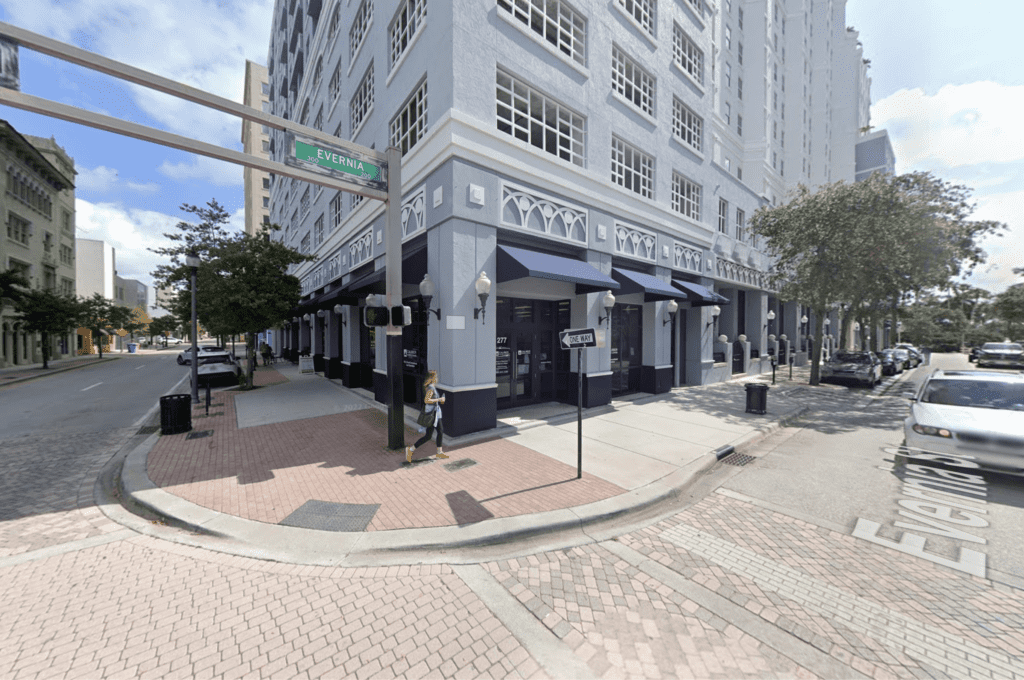 This ground floor corner unit, featuring expansive glass frontage, handicap accessibility, and on site parking, offers excellent visibility at Evernia Street and Olive Avenue. Positioned in the heart of Downtown, the space benefits from steady foot traffic and strong neighborhood demographics.